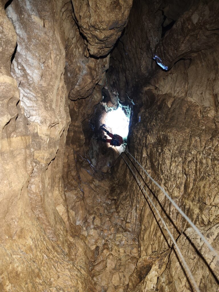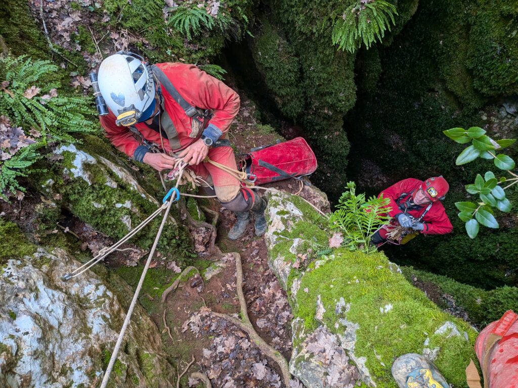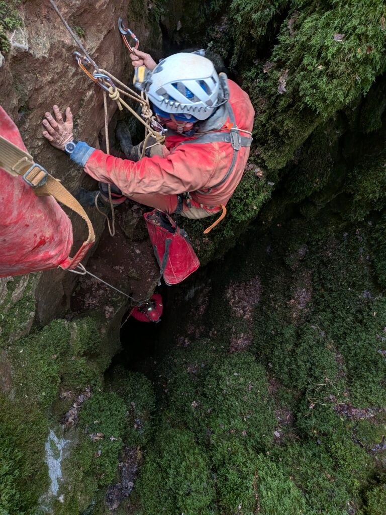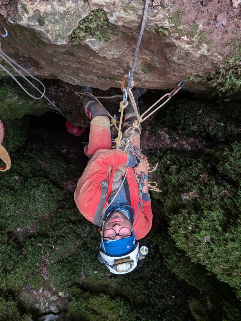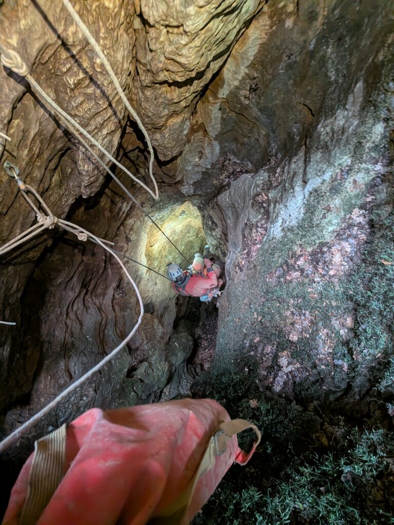 Premier trou de notre séjour de Février au Césame : on vise l’Agas, un aven qui descend à -160. PA et Simon à l’équipement. Un premier P37 nous dépose sur un grand palier qui donne sur la série de puits suivante. PA et Isa descendent, mais sont vite arrêtés sur CO2 ! Ça sonne à 18,5 (ou 18,3, un truc comme ça). Stop aux abords de -50 mètres, à l’endroit où trois puits se rejoignent. Dommage car la suite semblait esthétique, les puits sont jolis. TPST : très peu. Comme on a le temps, on trouve un plan B : ce sera Armédia, à quelques minutes de voiture.