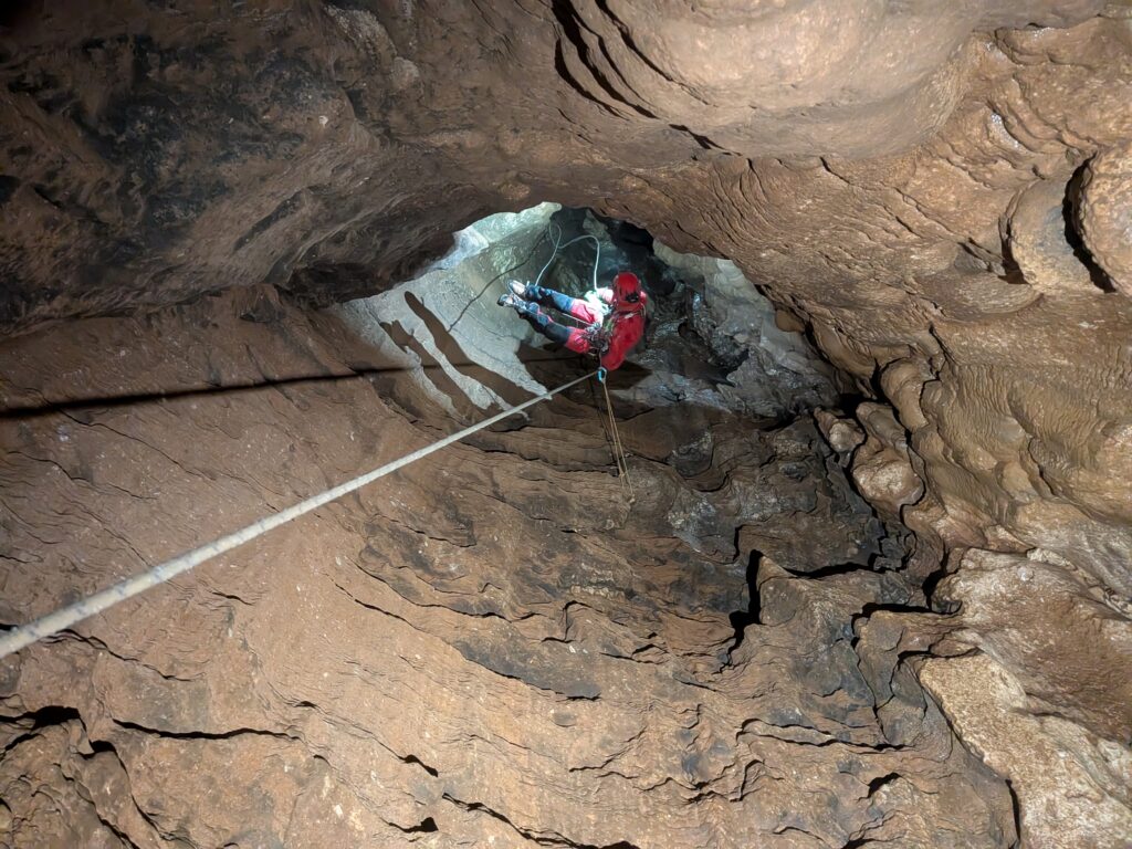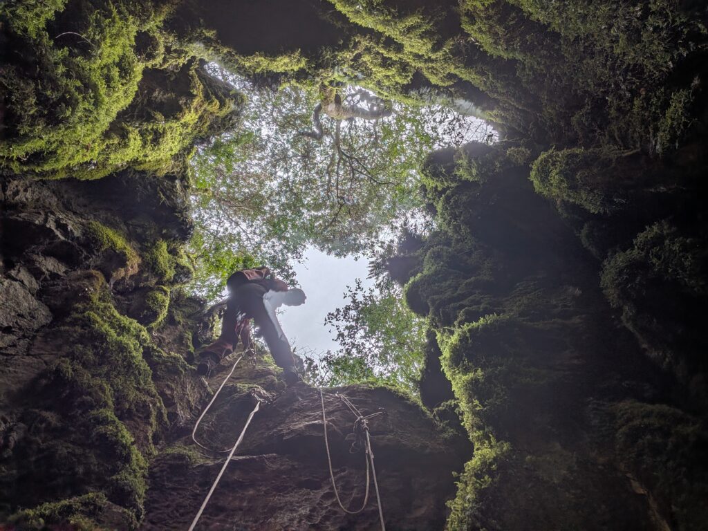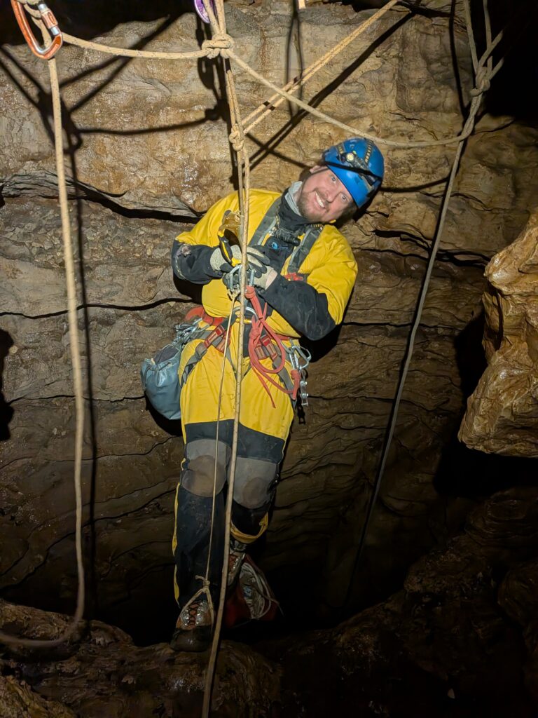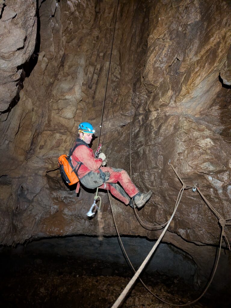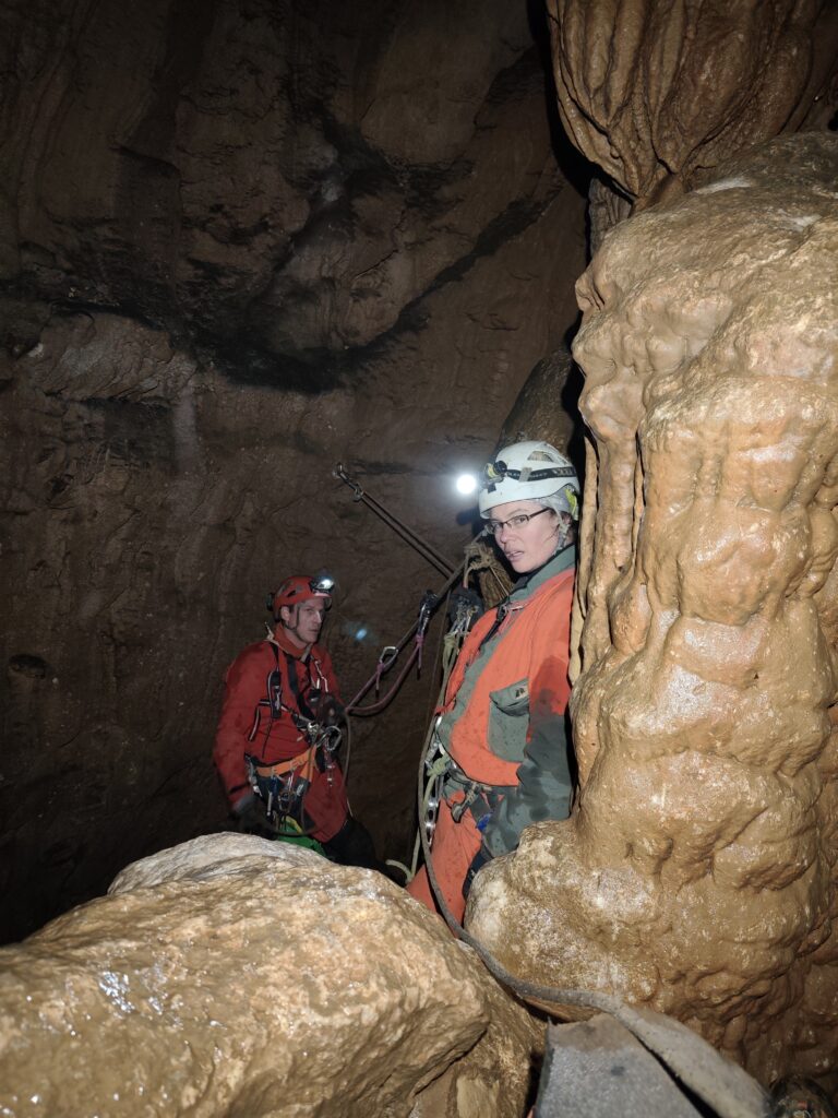 Premier trou de notre séjour de Février au Césame : on vise l’Agas, un aven qui descend à -160. PA et Simon à l’équipement. Un premier P37 nous dépose sur un grand palier qui donne sur la série de puits suivante. PA et Isa descendent, mais sont vite arrêtés sur CO2 ! Ça sonne à 18,5 (ou 18,3, un truc comme ça). Stop aux abords de -50 mètres, à l’endroit où trois puits se rejoignent. Dommage car la suite semblait esthétique, les puits sont jolis. TPST : très peu. Comme on a le temps, on trouve un plan B : ce sera Armédia, à quelques minutes de voiture.